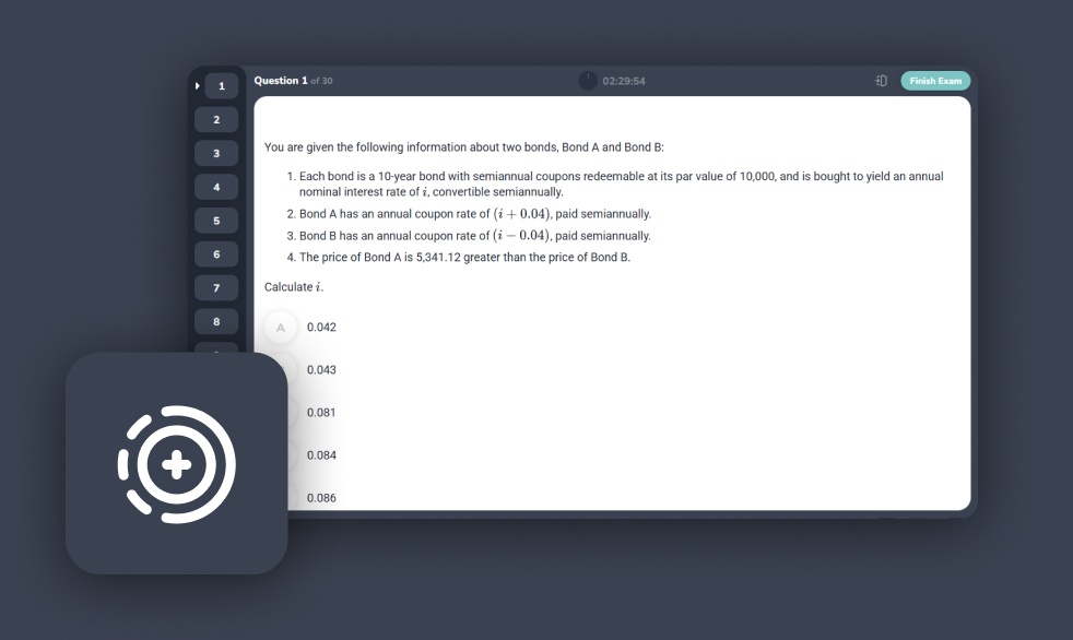 Calibration Exams mirror the real exam format but are much easier to help you test what you've picked up in the Exam FM trial. See how your pacing, accuracy, and endurance measure up, without the pressure of a live exam.