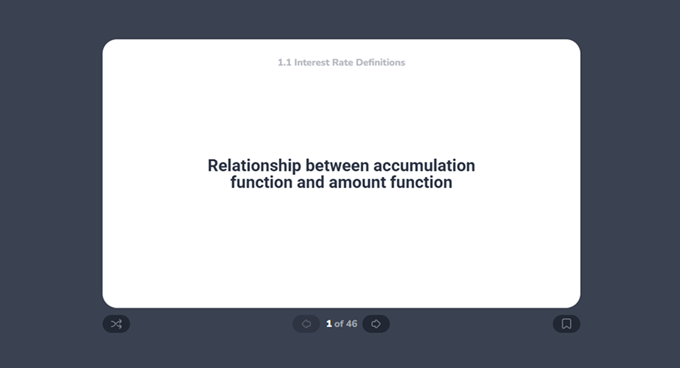 You’ll gain access to all Learn content in Section 1.1 of our Exam FM course, including manuals, videos, flashcards, and assignments. See how our Learn tools help you understand FM from the ground up, efficiently and confidently, making this trial a perfect Exam FM free study guide for anyone wanting to preview the course.